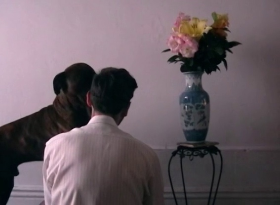 A irrupção de um terceiro elemento — um cão que entra em cena e lambe repetidamente a face da figura — introduz um momento de ambiguidade. O gesto é simultaneamente de afeto, distração e perturbação. A figura permanece, ainda assim, indiferente, perpetuando a sua postura resignada.